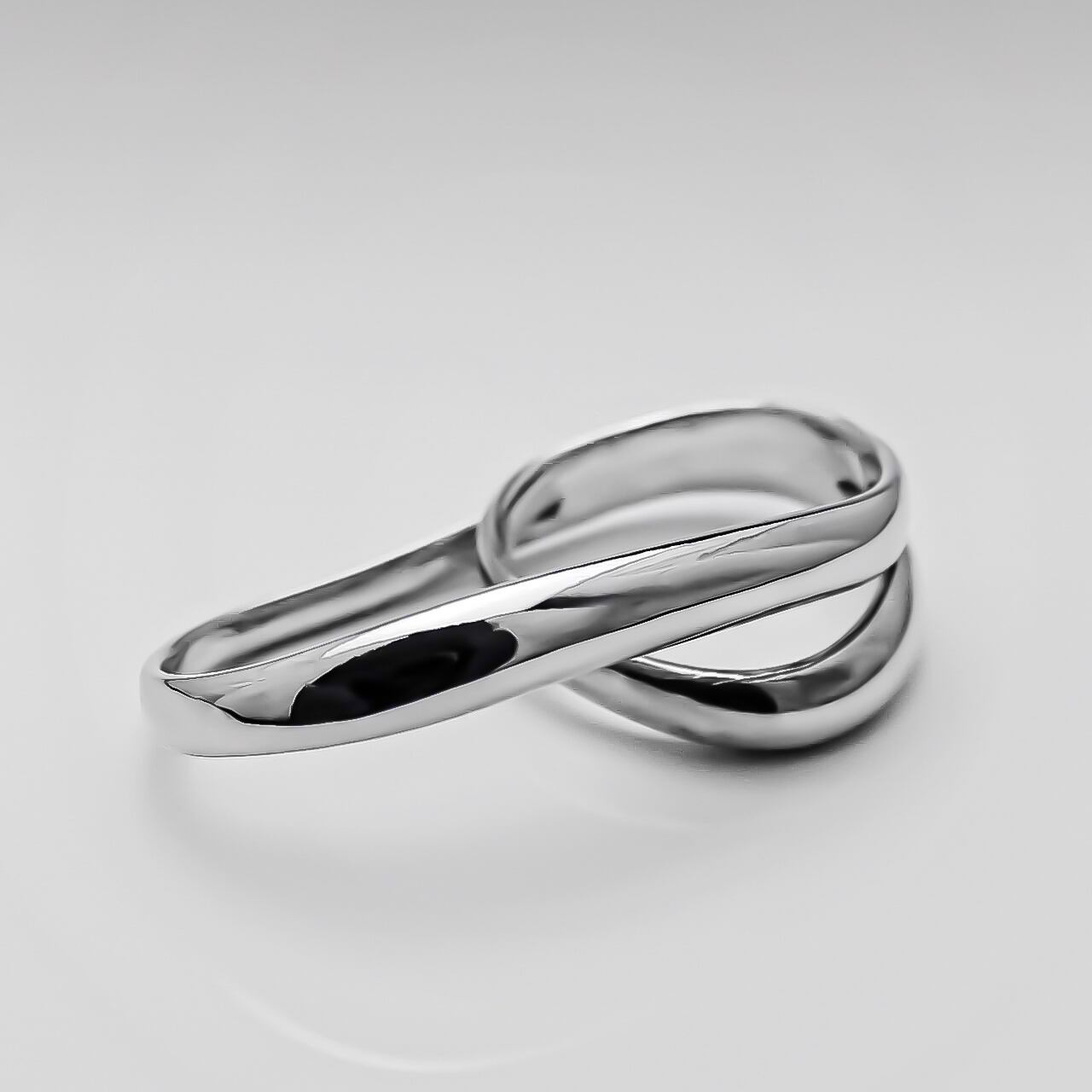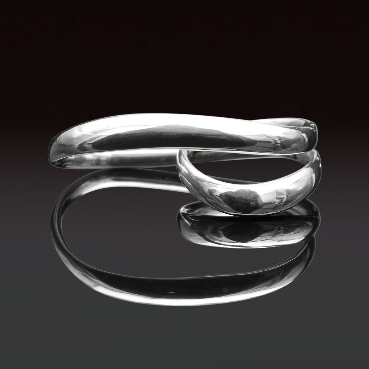 メビウスの輪のような2連リング "FibulaRing" の片方の輪を楕円に引き延ばしダブルリングへと仕上げました。