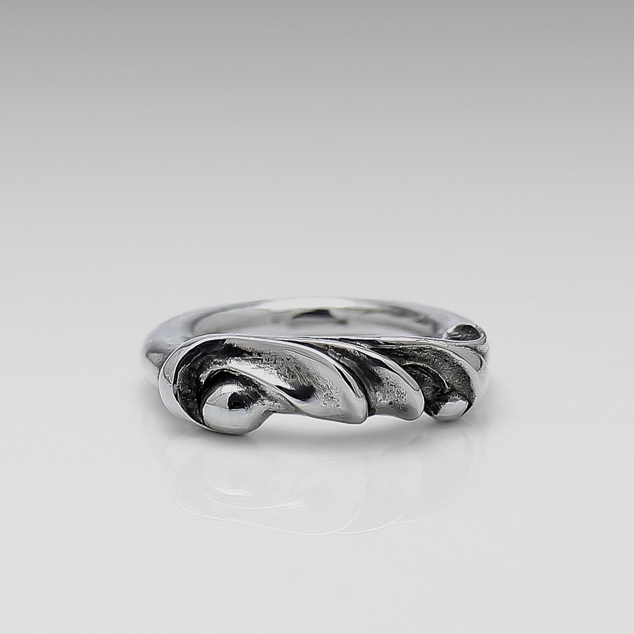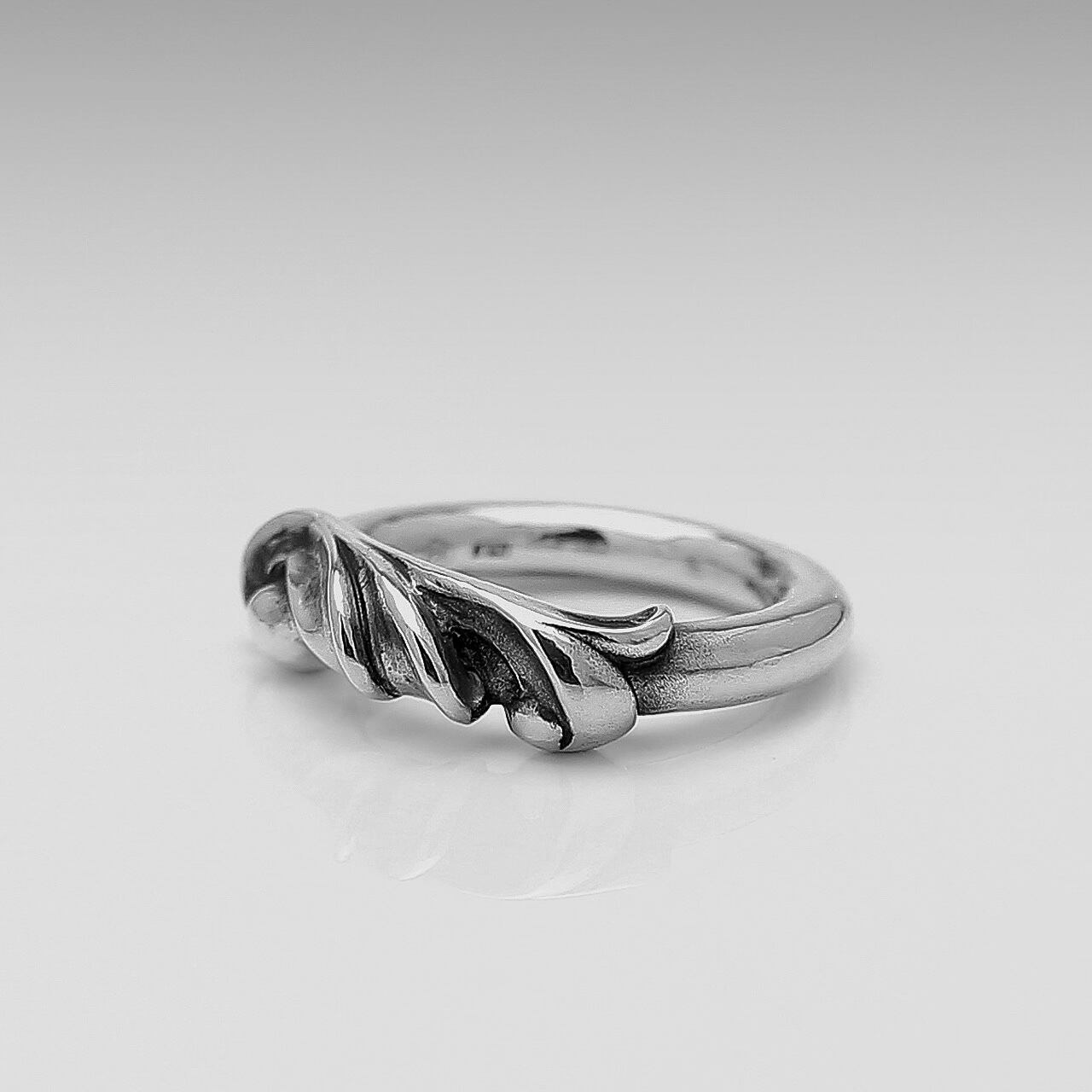 大きな時代のうねりを象徴するように、このリングのアカンサスリーフは渦を巻きそれに向かって波状にうねり伸びる葉をメインにデザインしました。